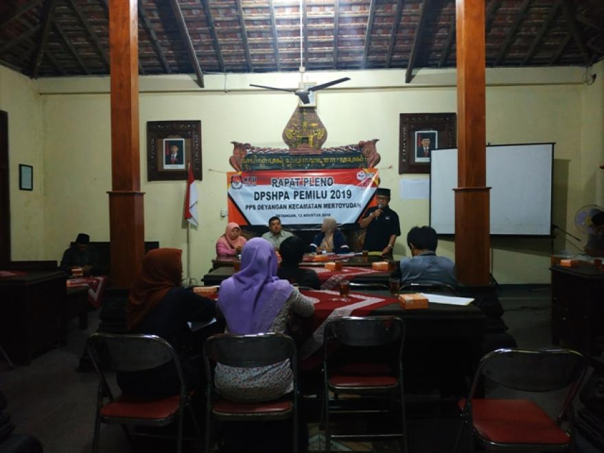 Sesuai dengan tahapan Pemilu 2019, PPS Desa Deyangan melaksanakan tahapan penetapan Daftar Pemilih Sementara Hasil Perbaikan Akhir Pemilihan Umum Tahun 2019 pada tanggal 12 Agustus 2018, yang dihadiri oleh PPS, Kepala Desa Deyangan, Ketua BPD Deyangan, PKD, Ketua PPK Mertoyudan, Perwakilan Bawaslu Kecamatan dan juga dari Perwakilan Beberapa Partai Politik.