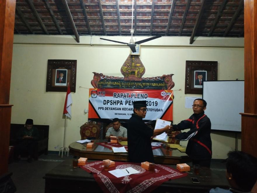 Sesuai dengan tahapan Pemilu 2019, PPS Desa Deyangan melaksanakan tahapan penetapan Daftar Pemilih Sementara Hasil Perbaikan Akhir Pemilihan Umum Tahun 2019 pada tanggal 12 Agustus 2018, yang dihadiri oleh PPS, Kepala Desa Deyangan, Ketua BPD Deyangan, PKD, Ketua PPK Mertoyudan, Perwakilan Bawaslu Kecamatan dan juga dari Perwakilan Beberapa Partai Politik.